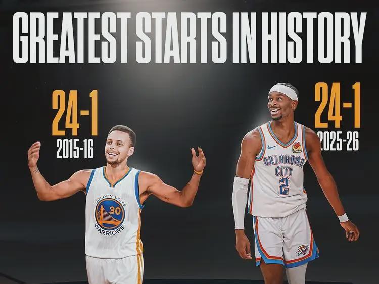 雷霆进NBA杯四强多强:25战24胜平宇宙勇历史第一16连胜队史纪录