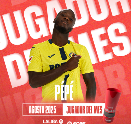 西甲官方:阿森纳旧将佩佩贡献2球1助,当选西甲月最佳球员