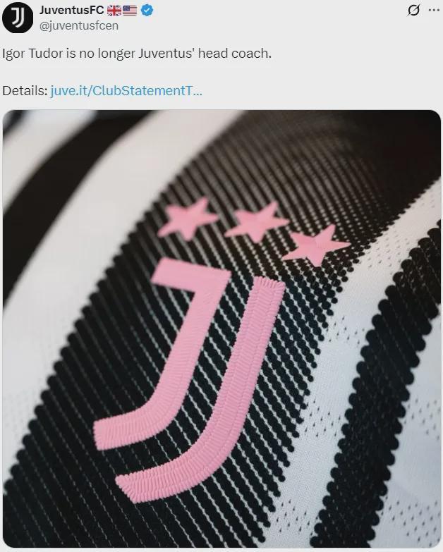 官方:尤文宣布解雇了图多尔,并且同时解雇了他的教练组。