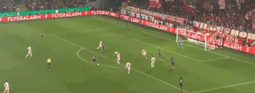 第19分钟,拜仁还以颜色,迪亚斯左路高速突破,禁区内晃开角度低射近角,齐勒及时倒地完成封堵。