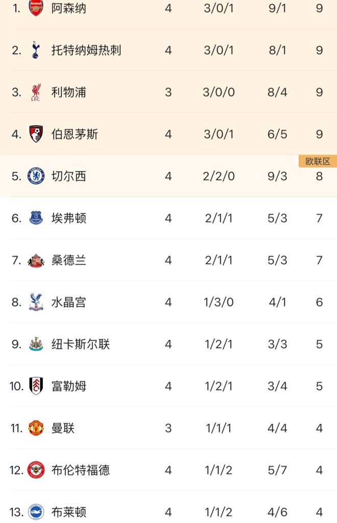 北京时间9月14日凌晨,新赛季英超结束了第4轮多场较量。切尔西爆冷2-2被布伦特福德逼平跌出积分榜前4名;而热刺则客场3-0大胜后积分追平阿森纳。