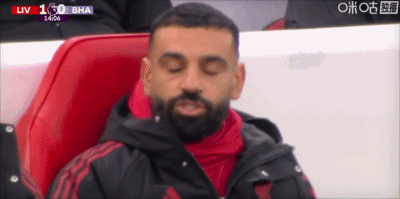 第15分钟,利物浦一球领先,镜头多次找到替补席的萨拉赫